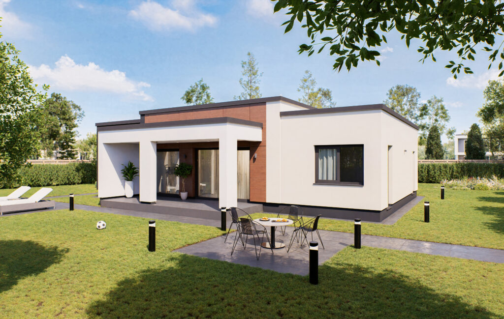 Наша коллекция типовых проектов пополнилась современным и лаконичным решением – Elegant Modern. Этот проект создан для тех, кто ценит просторные и светлые помещения, большие панорамные окна и современную архитектуру.